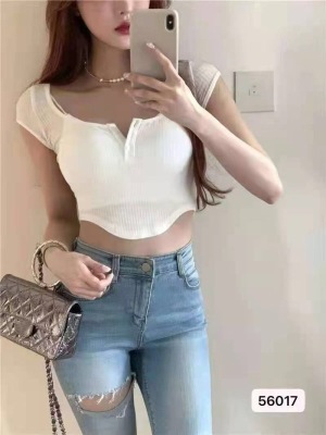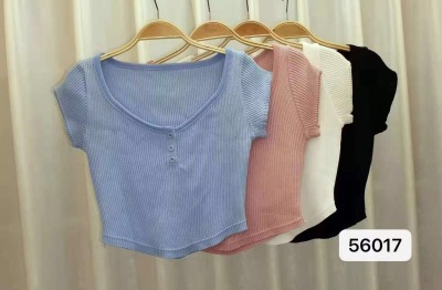 Europe and the United States pure desire Spice Girl Style super body irregular navel revealing slim fit short top summer new knitted T-shirt