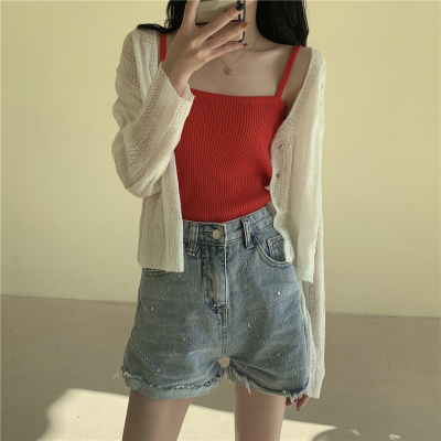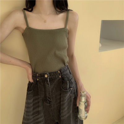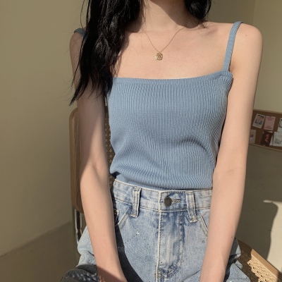 Korean version versatile slim knit suspender vest suspender blouse women's ice silk with bottom coat short style for summer wear