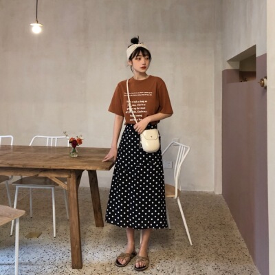 Real price real shot versatile Korean wave point casual A-line skirt skirt skirt fishtail skirt