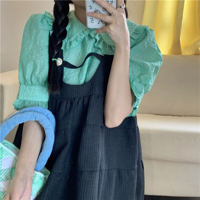 Real shot small sweet cute age reduction vest skirt + baby collar lotus sleeve top