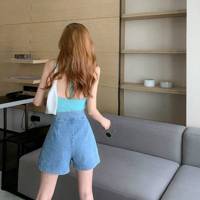 Real shooting and real price summer irregular denim skirt with buttocks showing thin a-skirt and high waist fake two-piece skirt pants
