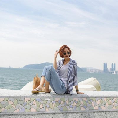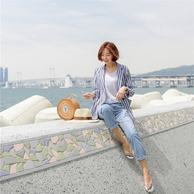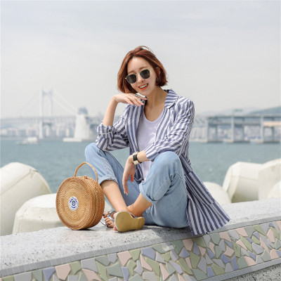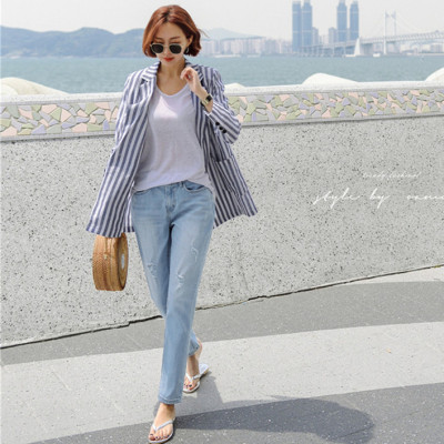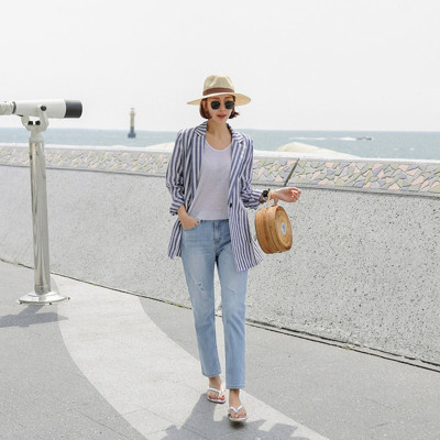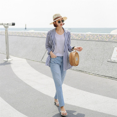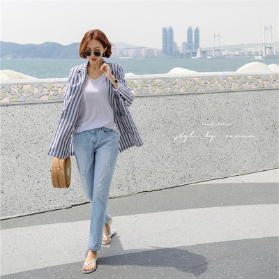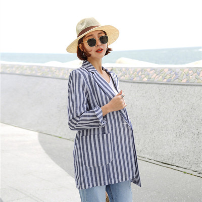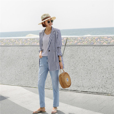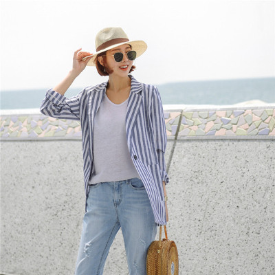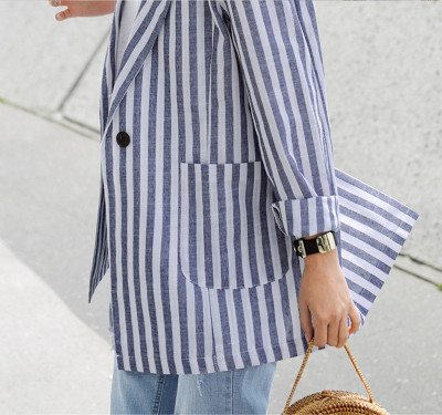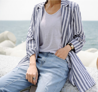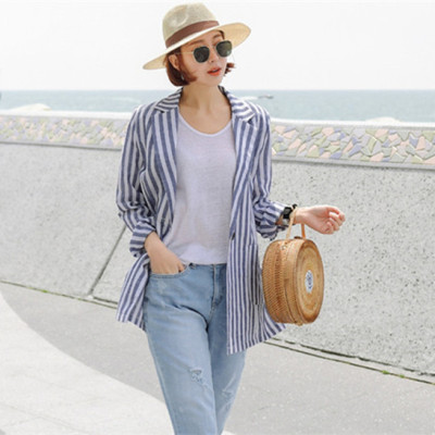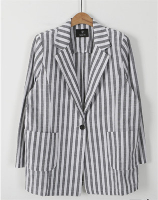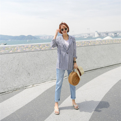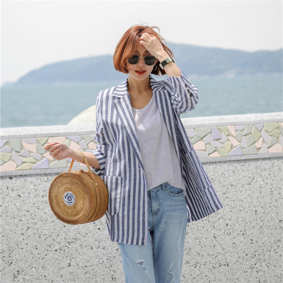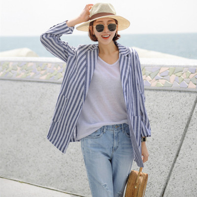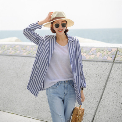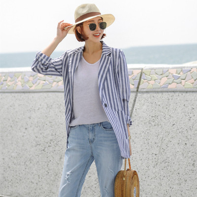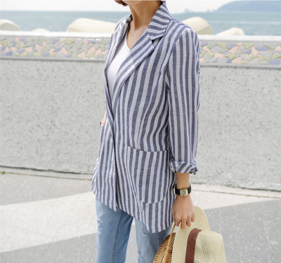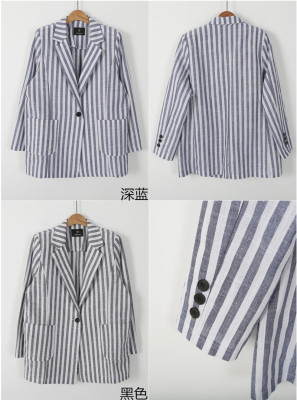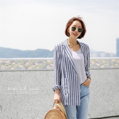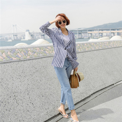 Slim stripe one button suit jacket women's 2021 new Korean Literature & Art Cotton & Hemp retro casual Blazer