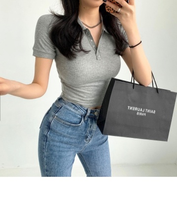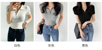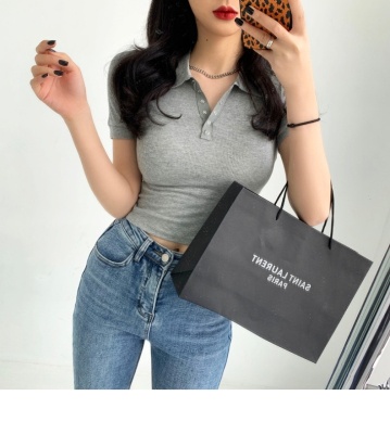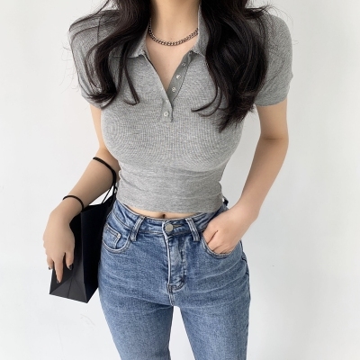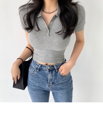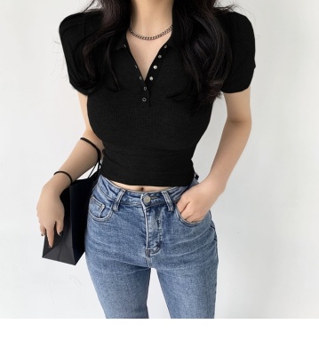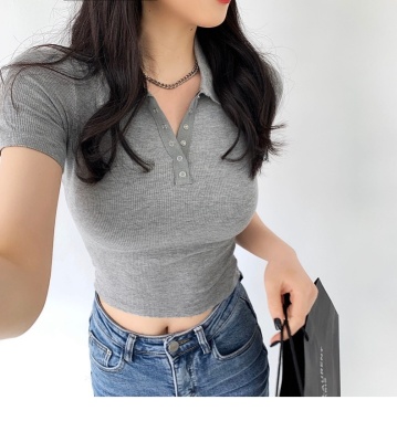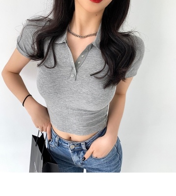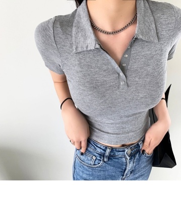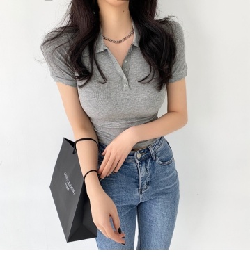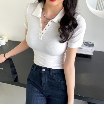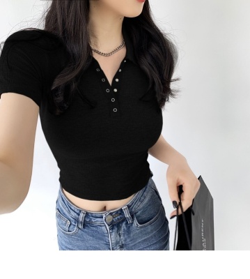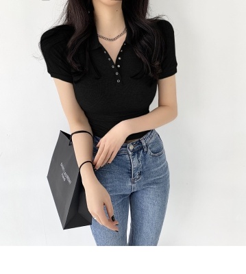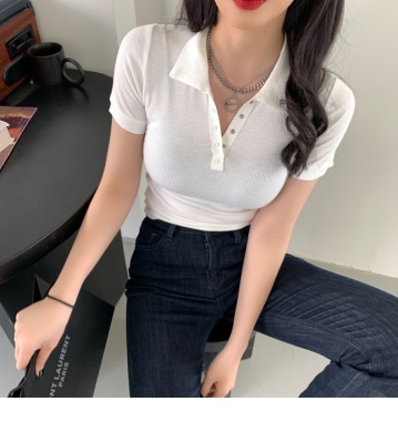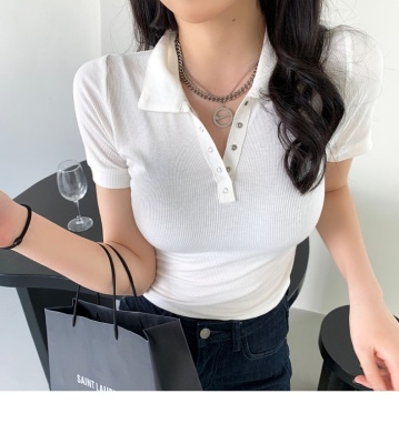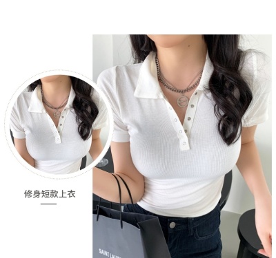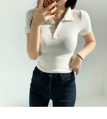 Real shot white T-shirt short sleeve European station 2021 summer new polo collar short top backing