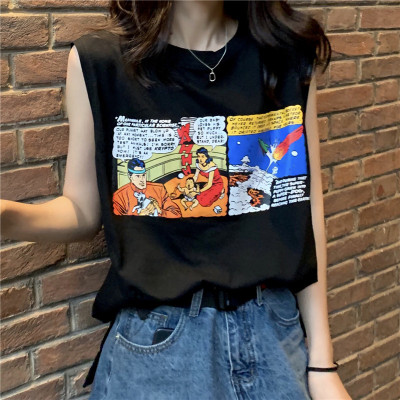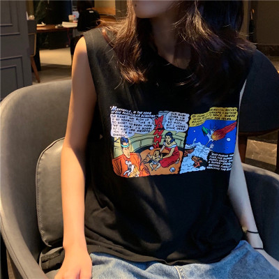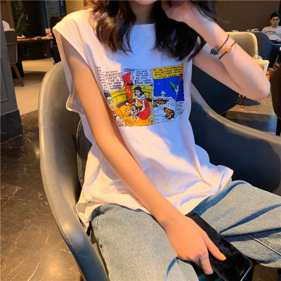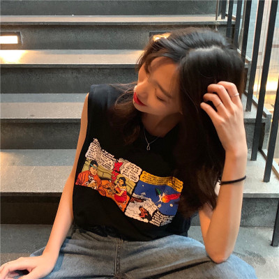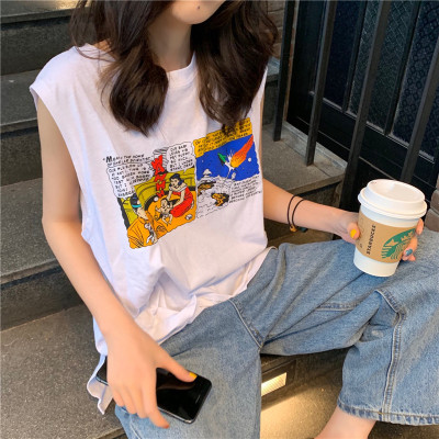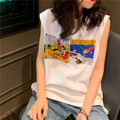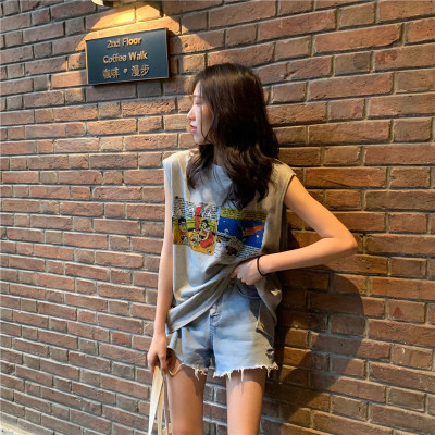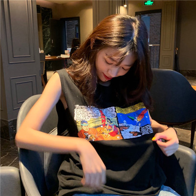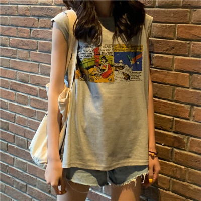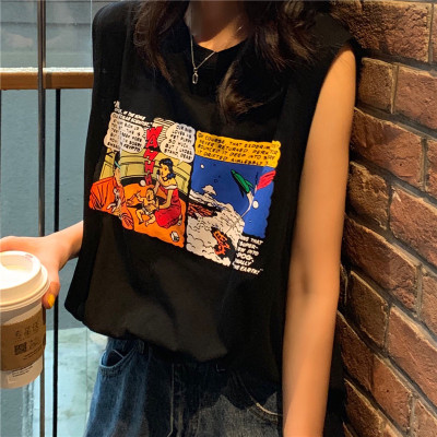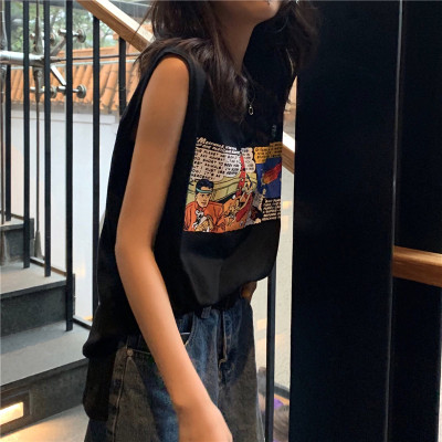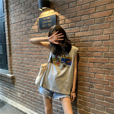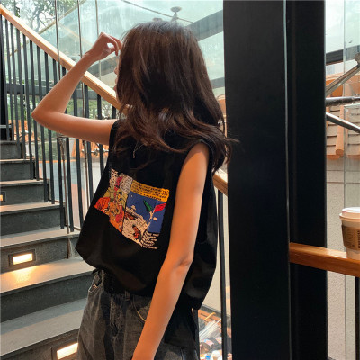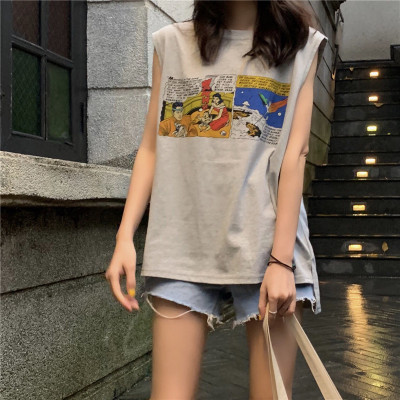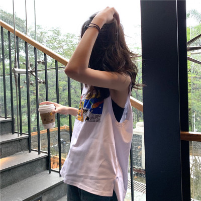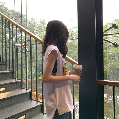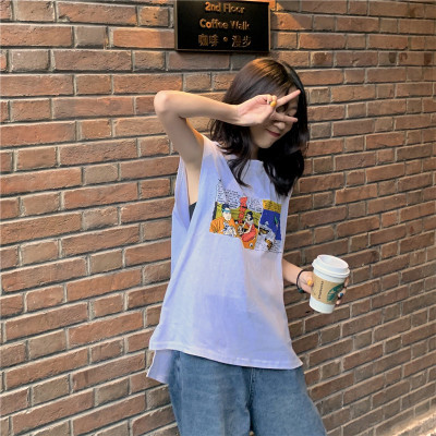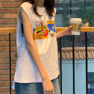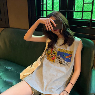 Real price ~ relaxed lazy style front and back printed sleeveless T-shirt