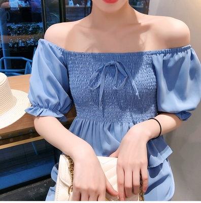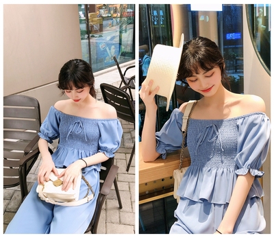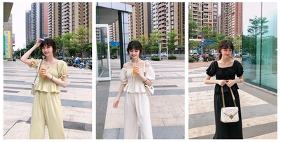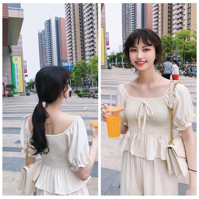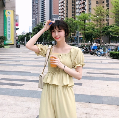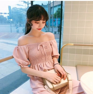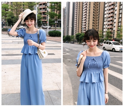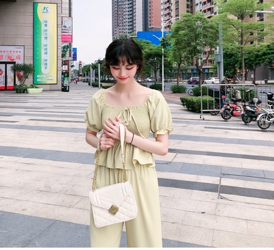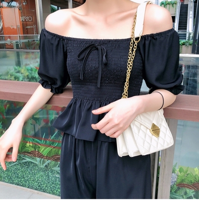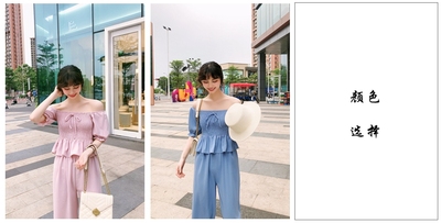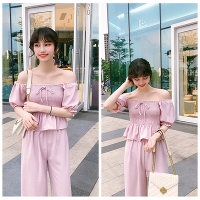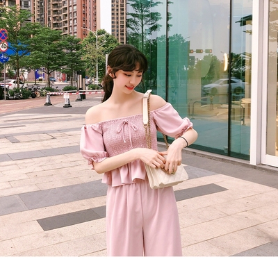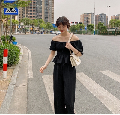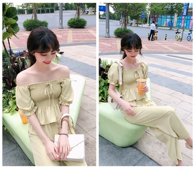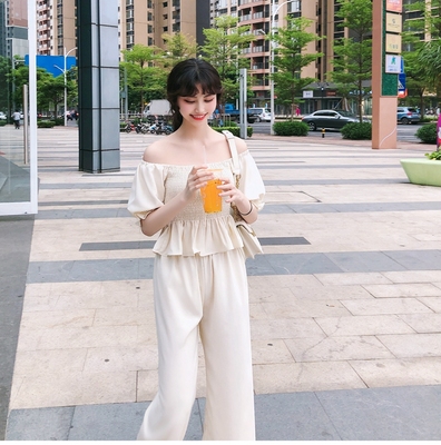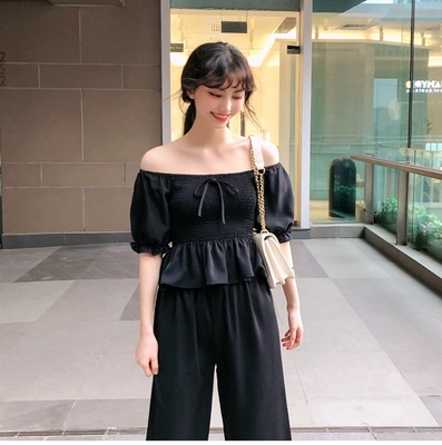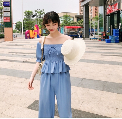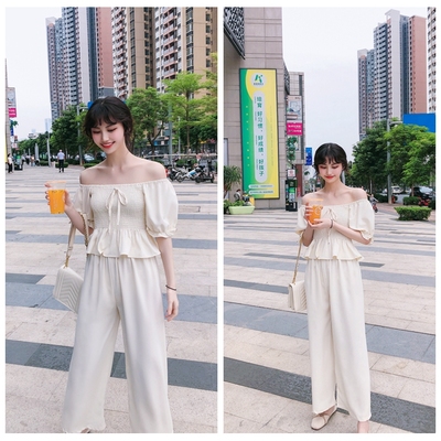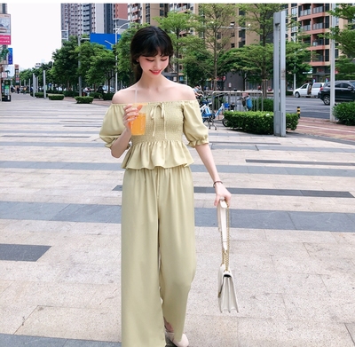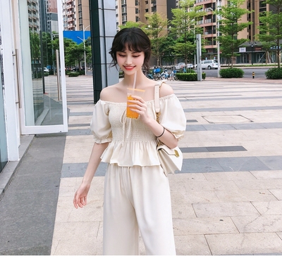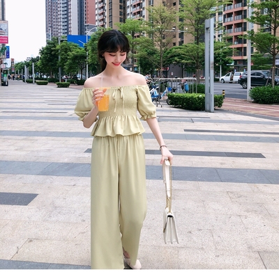 Two piece suit of 2021 age reducing western style one shoulder wide leg pants