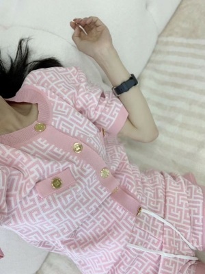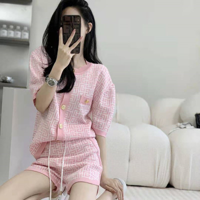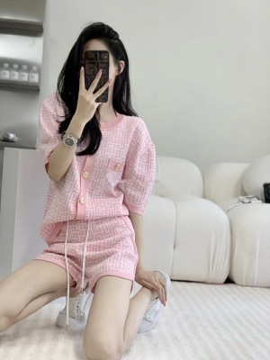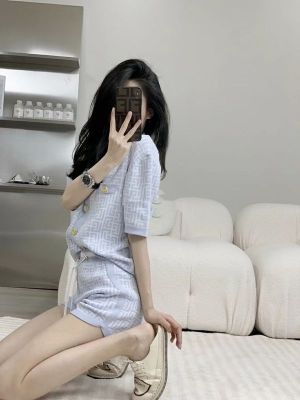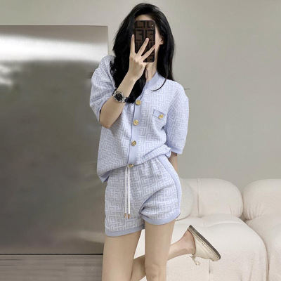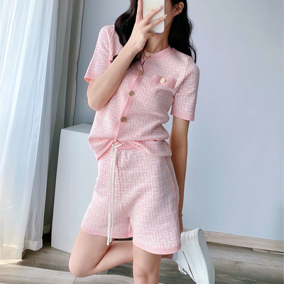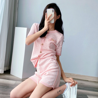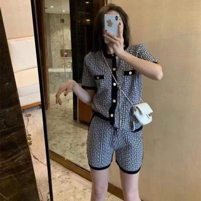 Summer small fragrance salt fried Street age reducing Hong Kong style retro leisure fashion knitted shorts two piece suit for women