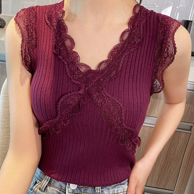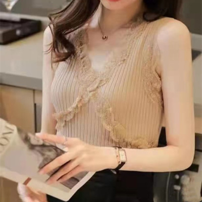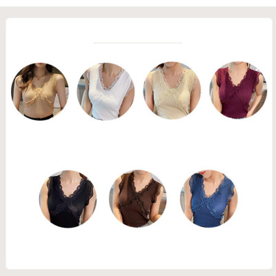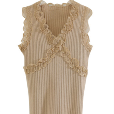 Suspender waistcoat women's simple fashion knitted new suit with lace spring bottom coat design