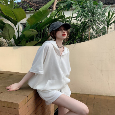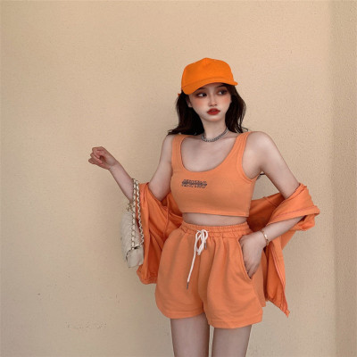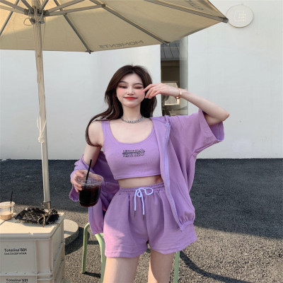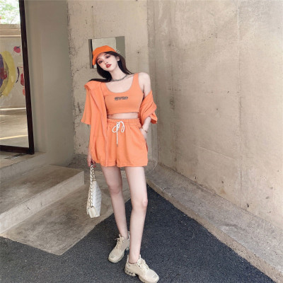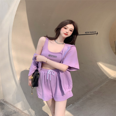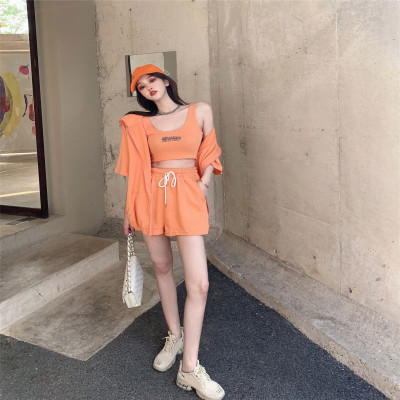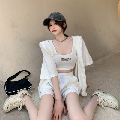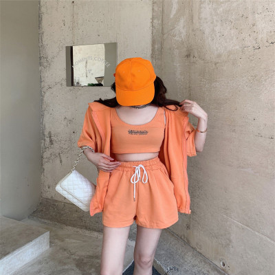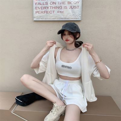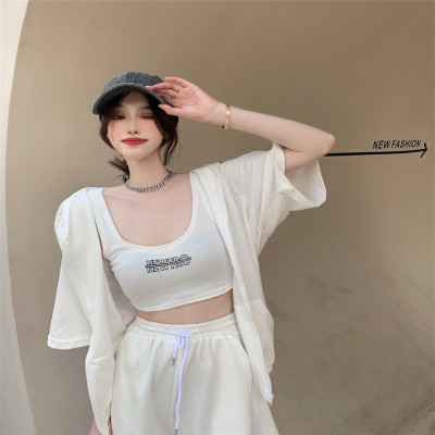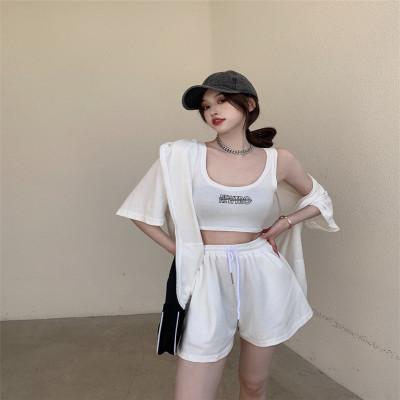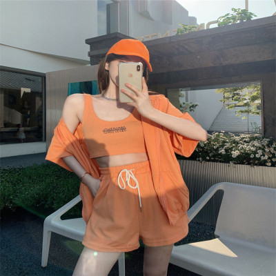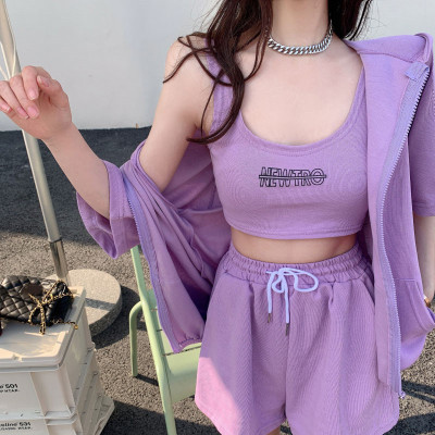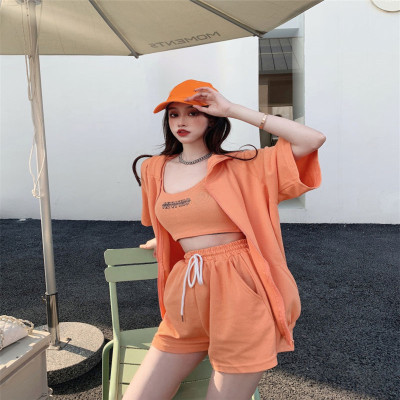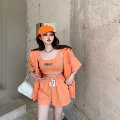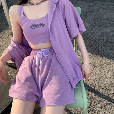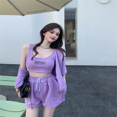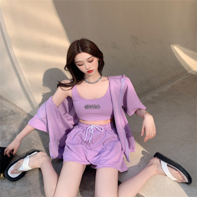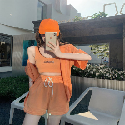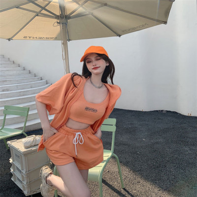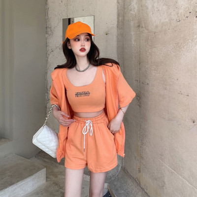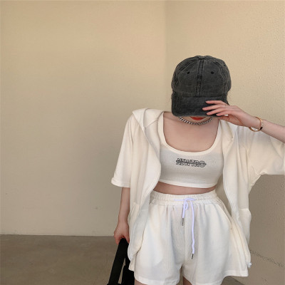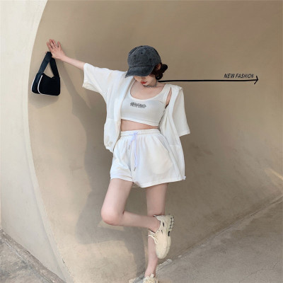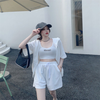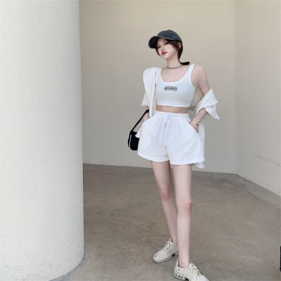 Suit women's 2021 new summer coat suspender wide leg shorts net red three piece set