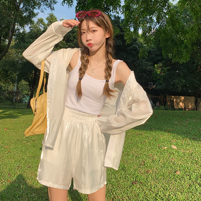 Real price real shot ~ new shining sunscreen Mermaid shirt + sling + versatile shorts three piece set