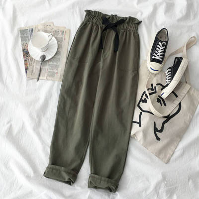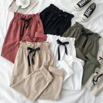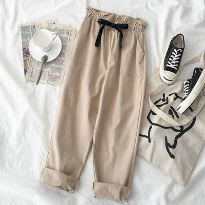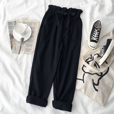 Spring and summer thin pants Korean version loose and versatile show thin nine point Harlan wide leg overalls casual pants