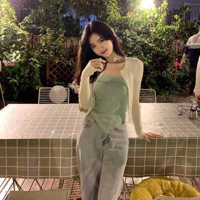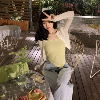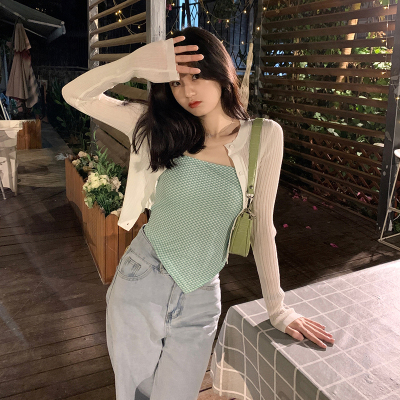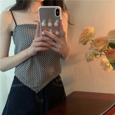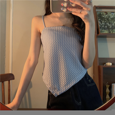 Design sense straight shoulder open back slim irregular sling vest top
