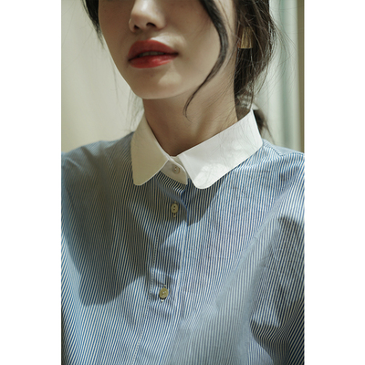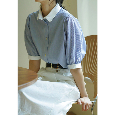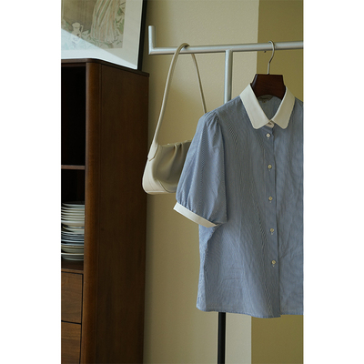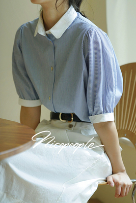 nicepeople2021夏季新款 撞色百搭配色杂志感条纹短袖衬衫女