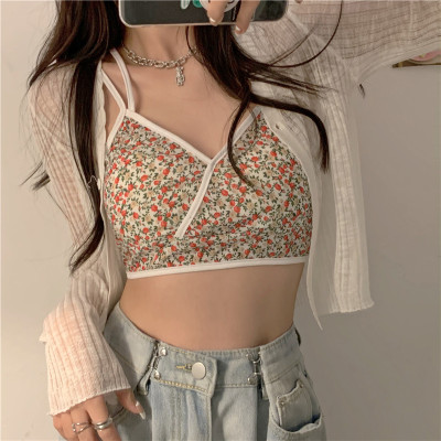 Real shot real price ~ beautiful back floral vest suspender female summer with slim shoulders with cross design on the bottom