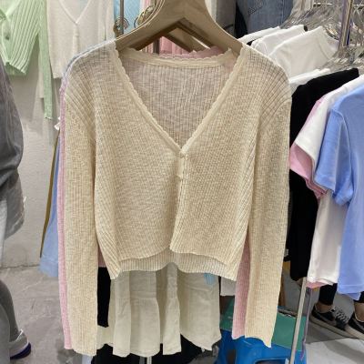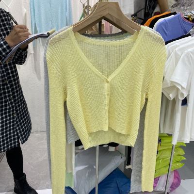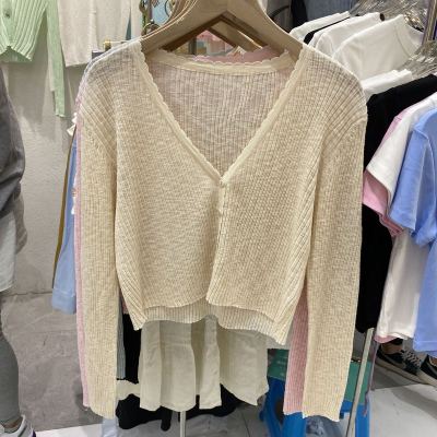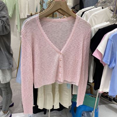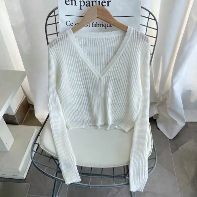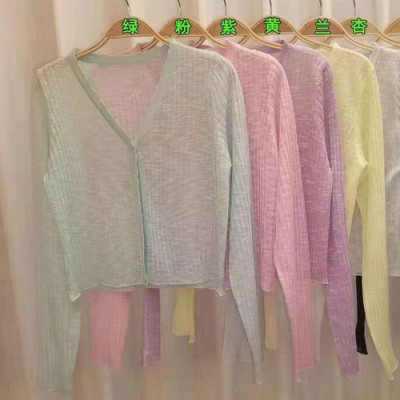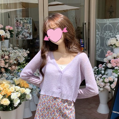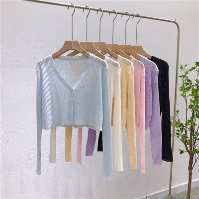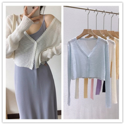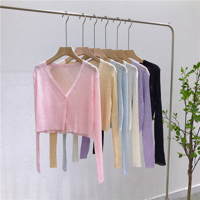 Xiaoxiangfeng knitted cardigan thin women's spring and autumn ice loose with sunscreen coat summer short top long sleeve