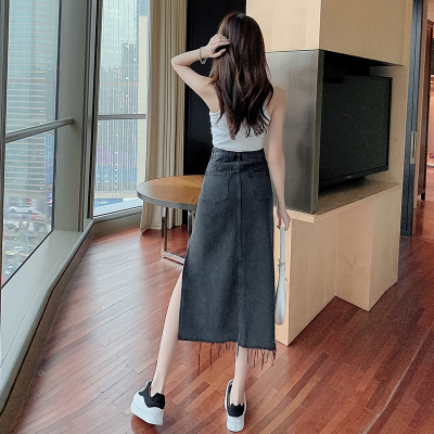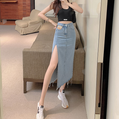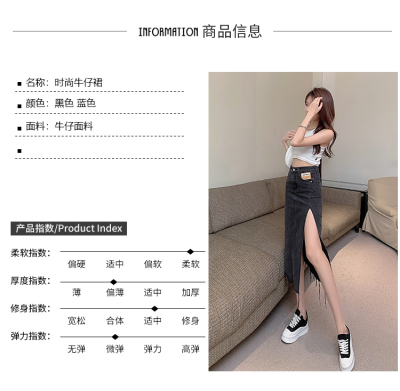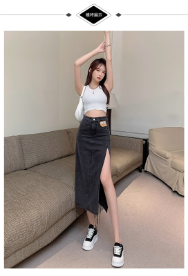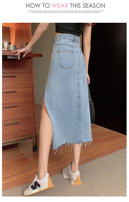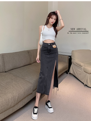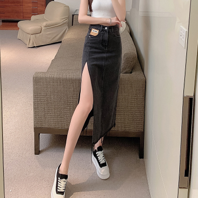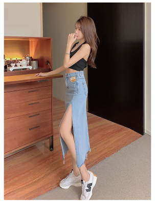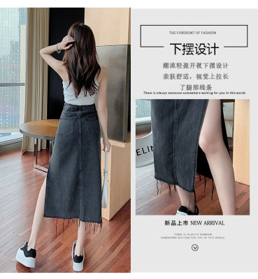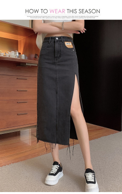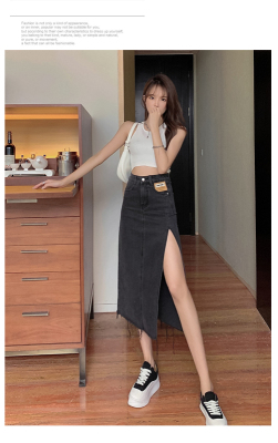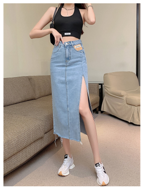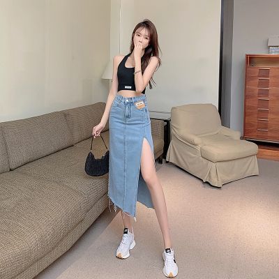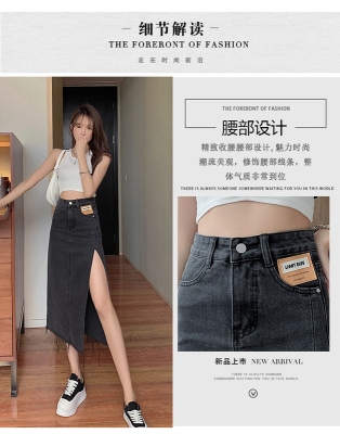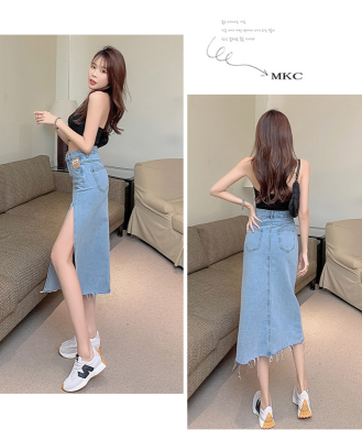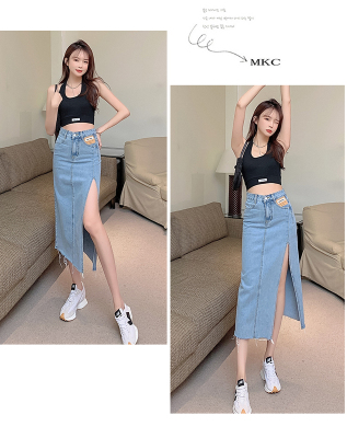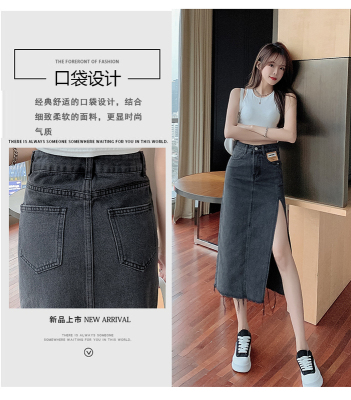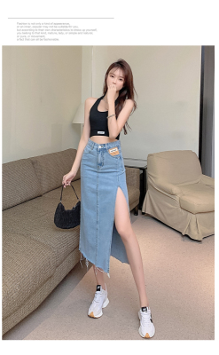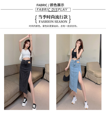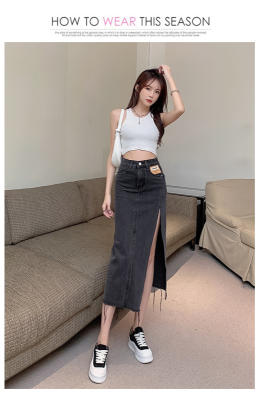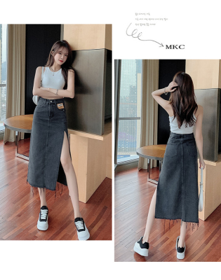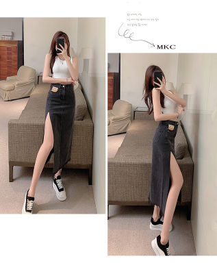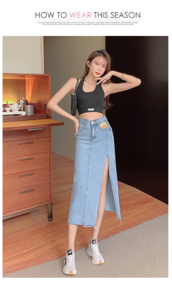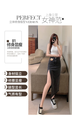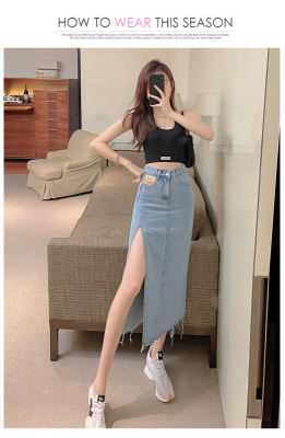 High waist split denim skirt half length skirt women's fashion show thin temperament