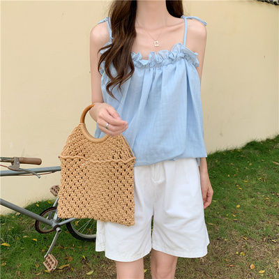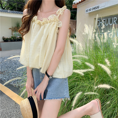 Real shot real price ~ Korean version age reduction sweet fold bubble sling shaggy waistcoat female