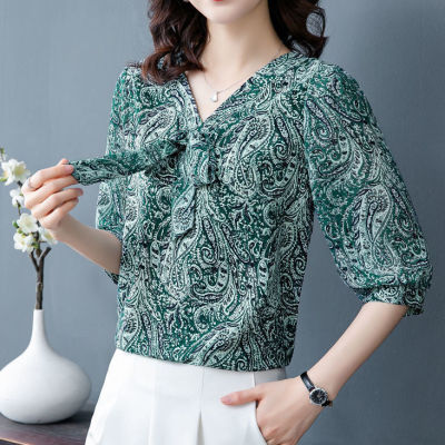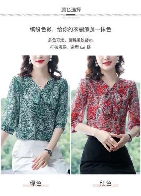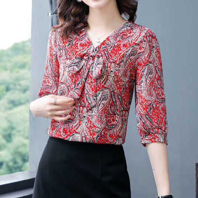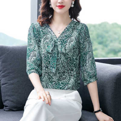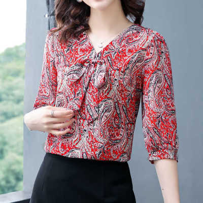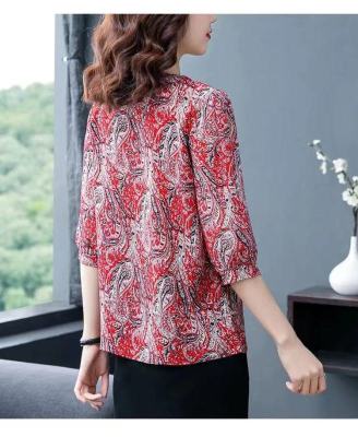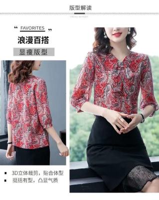 Floral Chiffon shirt women's 2021 new versatile temperament top grade base shirt Korean style medium sleeve age reducing shirt