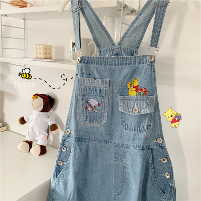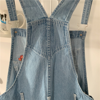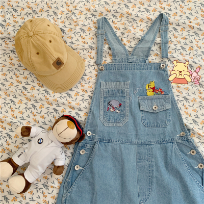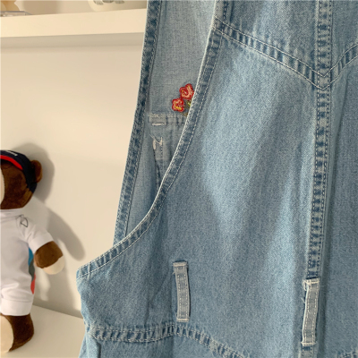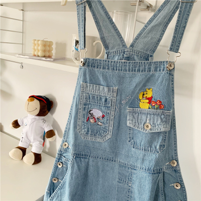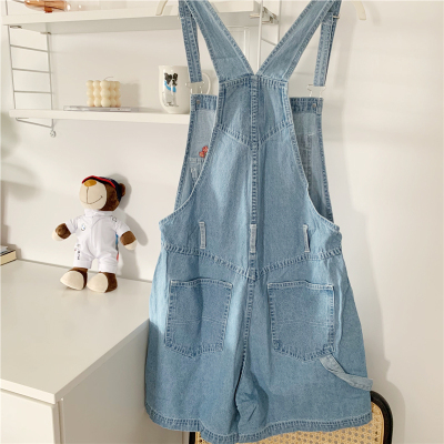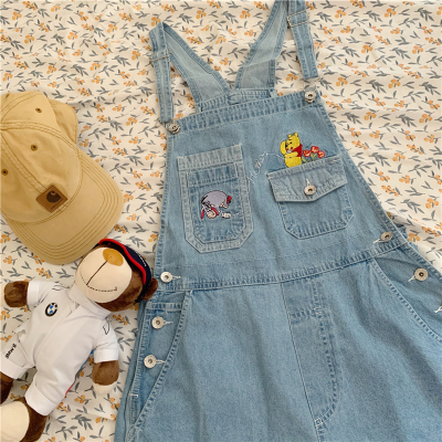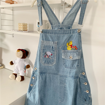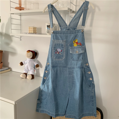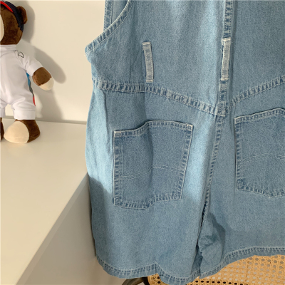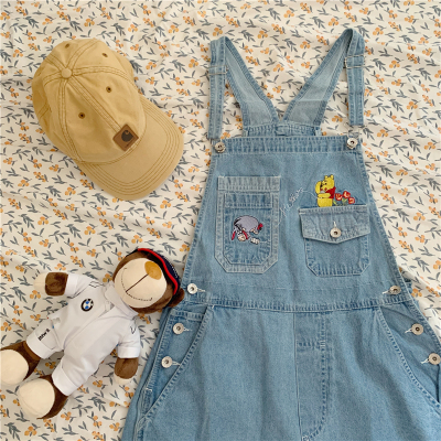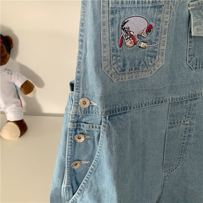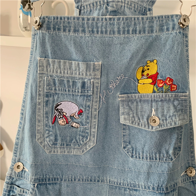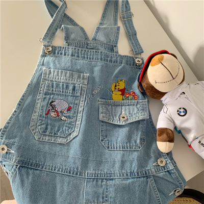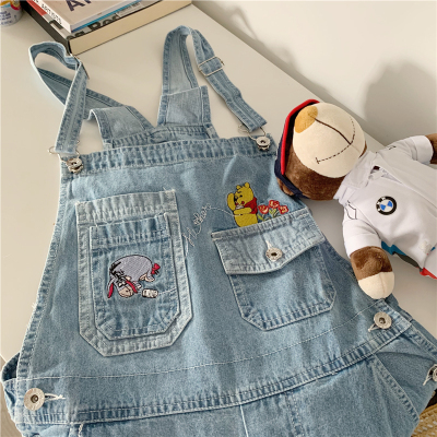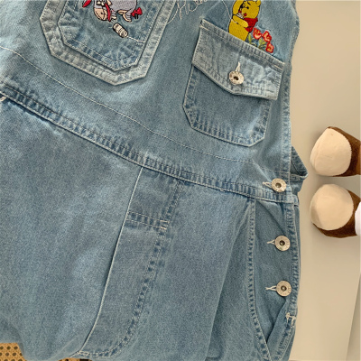 Real shooting ~ ancient children's fun cute girl cartoon embroidery bear pocket wash denim suspenders shorts summer