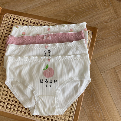 Real price photo of 4-piece briefs Japanese pink girl's honey peach summer printed cotton underpants