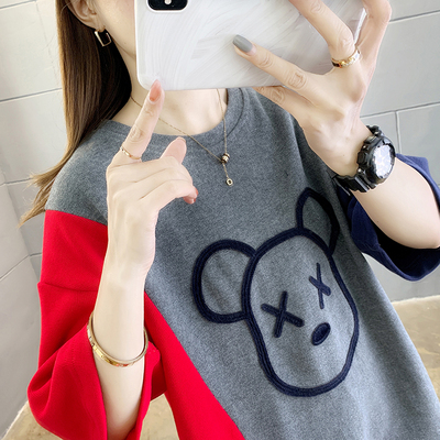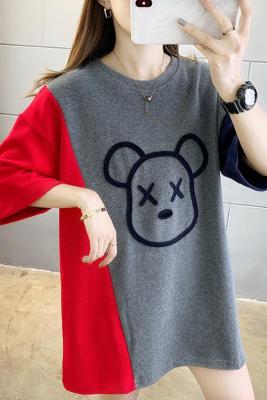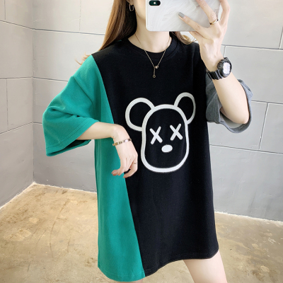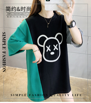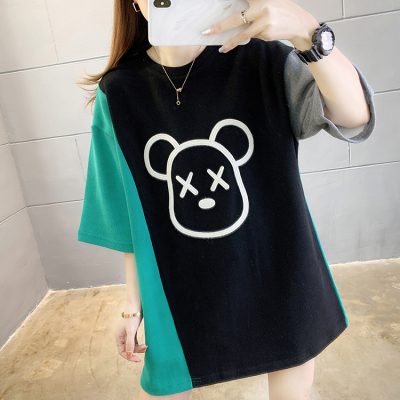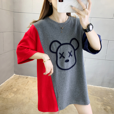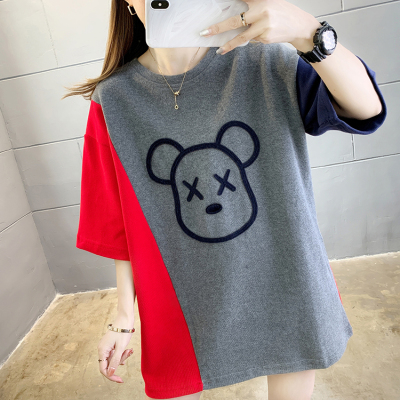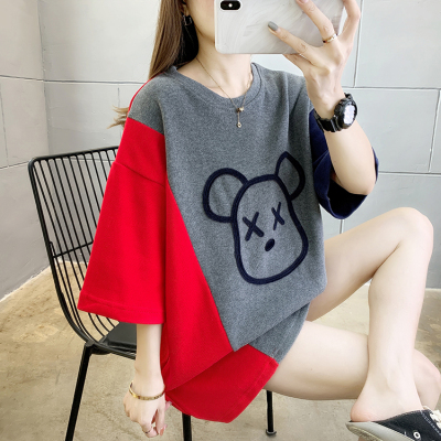 Real shot summer new Korean fashion round neck cartoon printing short sleeve loose size women's fat mm T-shirt