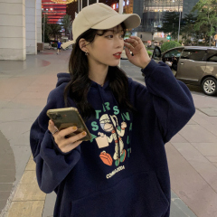 Real shot polyester Plush 250g cartoon ins Plush thickened Hoodie