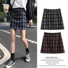 Hong Kong style retro high waist Korean plaid skirt a-bag hip skirt