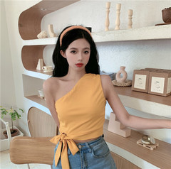 Real shot one shoulder hem bow Chiffon sleeveless vest