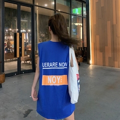 Real shot cotton summer vest Korean student versatile medium and long back print