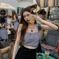 Real shot real price ~ Korean summer design small crowd Sexy Halter Plaid sleeveless vest 2 colors