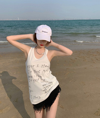 Bottom lettered vest women's high waisted slim fit short top knitted with sleeveless T-shirt