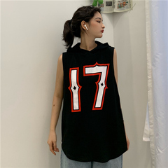 Real shot summer sleeveless T-shirt vest women's hooded digital printing Harajuku fan