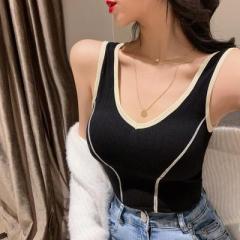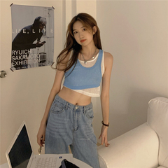 Real price new Korean hot girl love short color matching knitted suspender vest top