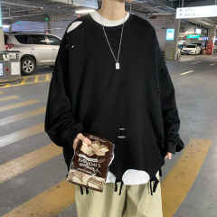 Autumn round neck sweater men's large Korean loose long sleeve coat for men