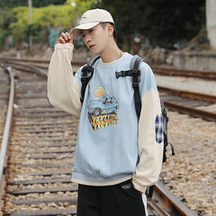 Hong Kong style spring and autumn Pullover men's sweater loose casual fashion printed top