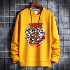 Hong Kong Style autumn winter Plush trendy printed loose Crew Neck Sweater men's coat