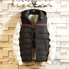 Down cotton vest for men's autumn and winter Korean hooded thickened couple's shoulder jacket