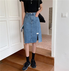 Real price ~ high waist side split denim skirt women's summer slim A-line hot girl Hip Wrap Dress