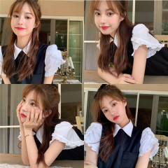 Three piece Korean knitted vest white shirt skirt