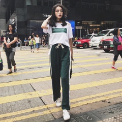 Sportswear women's summer loose letter print T-shirt split stripe wide leg pants 2-piece set