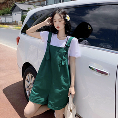 Real price ~ simple solid color bottomed T-shirt + age reducing loose strap shorts 2-piece set