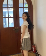 Real shot pure lust girl の wood ear tie waist short sleeve shirt + versatile plaid skirt