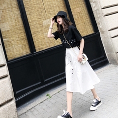 Real price 2021 two piece suit of French slim strap dress and round neck shirt