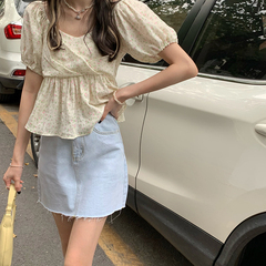 Real price ~ girlish split suit with back skirt + white Lapel linen shirt with bubble sleeve