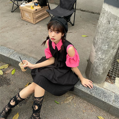 Real price Korean loose bubble sleeve versatile Top + black dress
