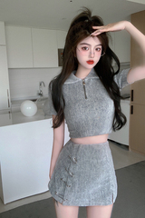 American style retro spice girl blue gray tie dye pit zipper Polo Short Sleeve T short skirt pants