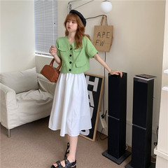 2021 summer new Korean style bubble sleeve shirt + two piece design dress