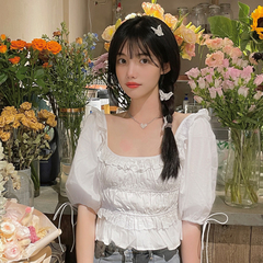 #Real price ᦇ French design small number of square collar bubble sleeve short top women's summer