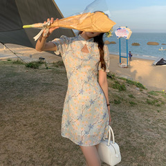 Elegant jacquard ~ sense of design long and short modified cheongsam dress women's summer