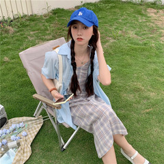 Real shot purple lattice short small suit coat irregular pleated skirt White Sleeveless Shirt