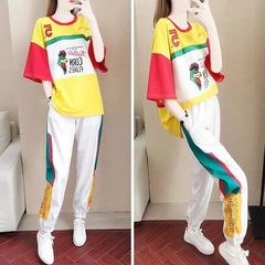 Official figure fashion short sleeve T-shirt + trousers sportswear suit women's two piece set
